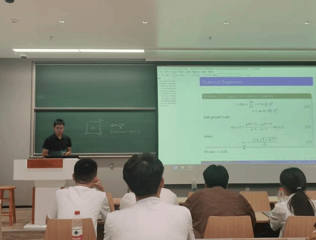 在学术研讨环节,刘党政给现场的同学作了“非随机数学中的随机结构”的学术报告,同学们表示受益匪浅,从随机结构的不确定性中领悟到了其独特的数学魅力;“邓稼先班”学生汪冉冉和中科大学生侯相龙分别作了题为“Integral approximation orthogonality with Hermite–Hadamard form”“Adaptive Boosting Methods for the Machine Learning Based PDE Solver”的学术分享,到会的同学进行了热烈地交流。