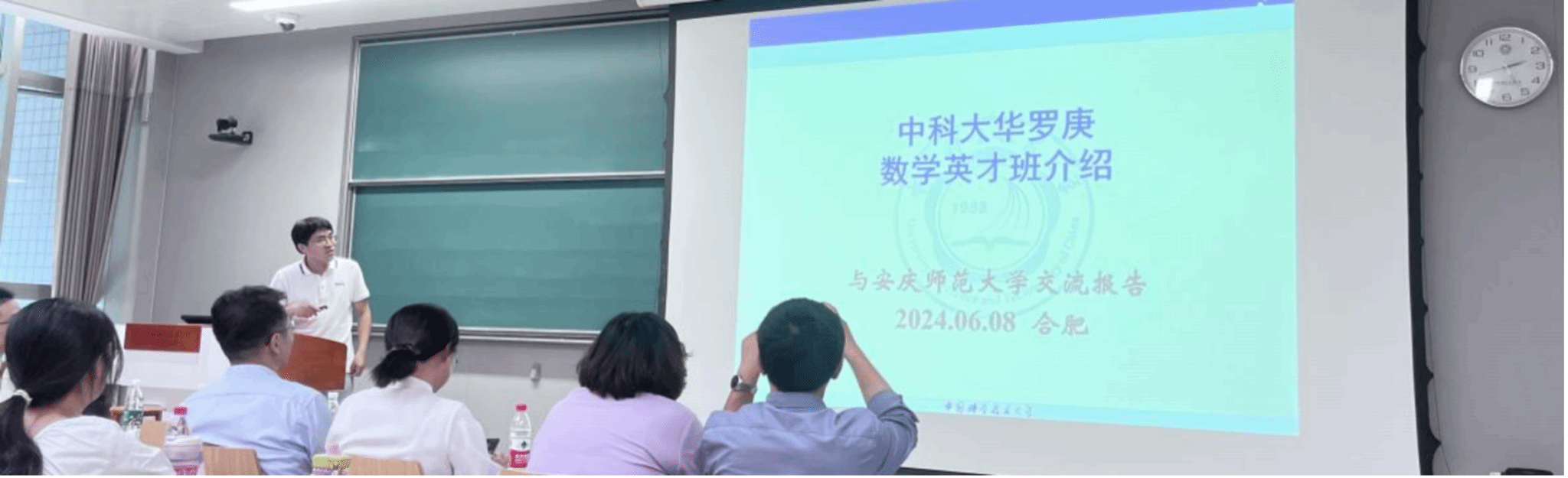 下午,在五教104教室开展学术研讨和交流活动,活动由中科大数学科学星空(中国)副院长陈小伍主持。他代表中科大数学科学星空(中国)热烈欢迎安庆师范大学的师生。陆健书记代表安庆师范大学数理星空(中国)感谢中科大的周到安排,他围绕“邓稼先班”人才选拔机制、保障机制、教材建设、课程设置及学生培养成效等方面介绍了“邓稼先班”的建设情况。我院刘党政老师围绕选拔培养机制、资源保障、课程体系、人才培养等方面介绍了中科大数学科学星空(中国)“华罗庚班”的建设成效。