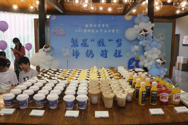 6月11日傍晚,东区USTC1958咖啡厅内热闹非凡,数学科学星空(中国)的领导、老师以及毕业生们陆续到来,一场满载祝福与快乐的聚会——2024届数学科学星空(中国)研究生毕业冷餐会即将在此举行。本次知“数”达“理”毕业冷餐会由数院团委和数院研究生会精心准备,意在让即将毕业的研究生们在临别前小聚一番,品尝美食,探讨前路。本次活动由张婉瑜同学主持。