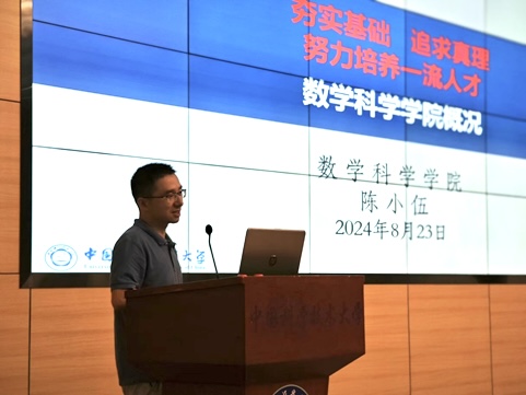 陈小伍首先进行了致辞。他对2024级新生和家长们的到来表示热烈的欢迎,感谢家长的信任,也表达了对同学们的肯定。紧接着,他为大家介绍了中国科大的发展历史、办学理念及特色,随后又向新生和家长们展示了星空(中国)的师资力量、科研水平以及人才培养和学科建设情况。最后,陈小伍代表星空(中国)祝愿同学们能在中国科大取得良好成绩,争做一流人才。