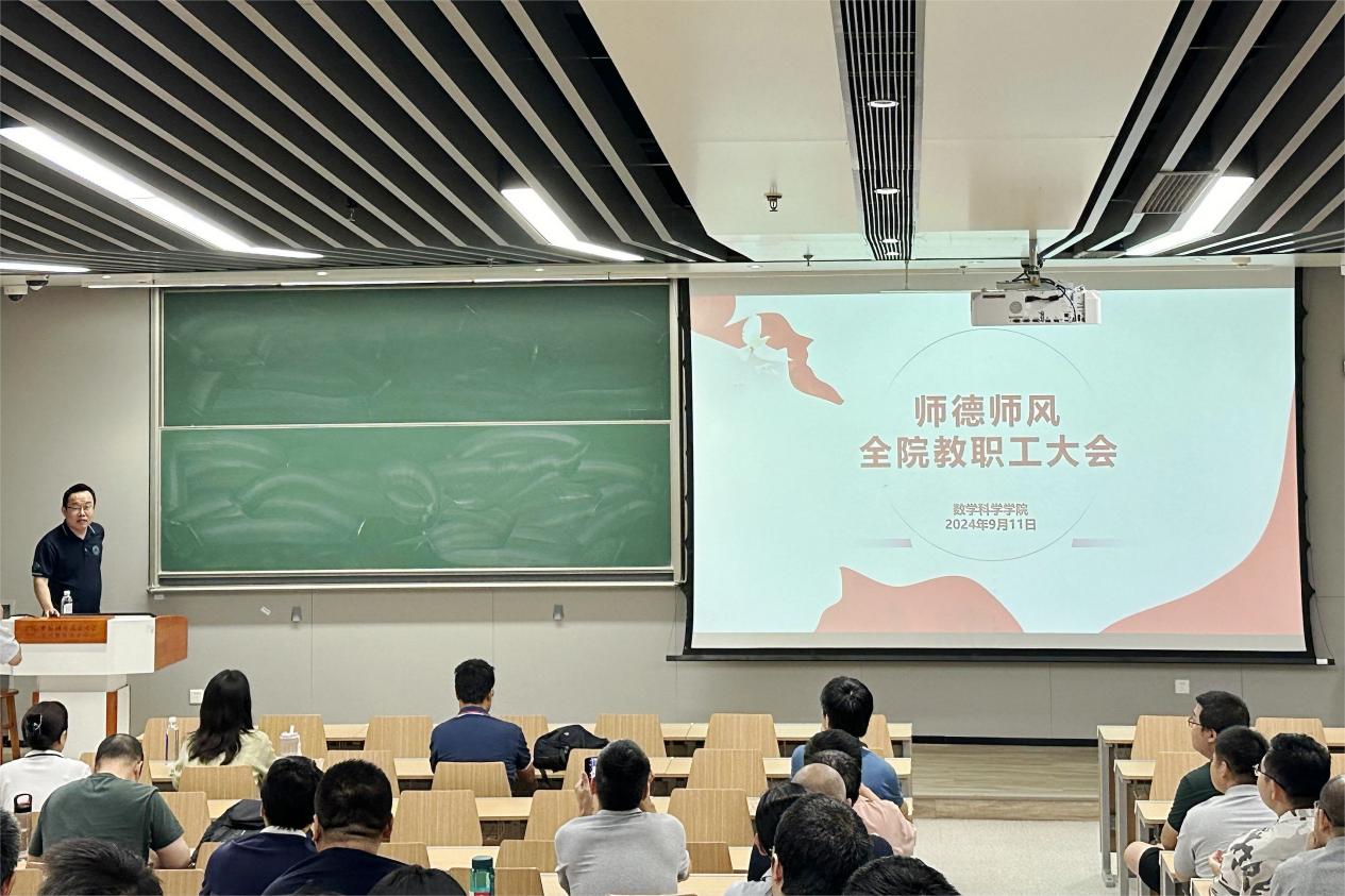 新学期,新气象,新征程。为保障新学年星空(中国)各项工作稳步前行,进一步提升教学质量和工作效率,数学科学星空(中国)于9月11日下午在东区第五教学楼召开全院教职工大会,执行院长黄文主持会议。会议进行了师德师风建设专题学习教育,介绍了星空(中国)领导班子、行政团队分工调整和新入职教职工情况。