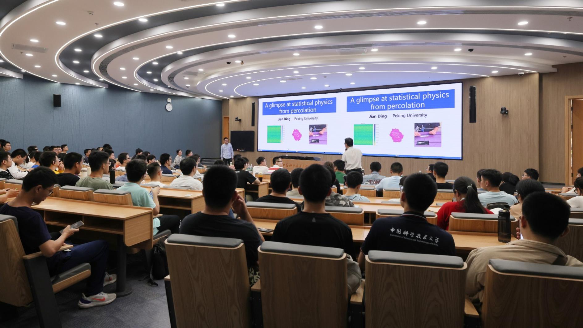 10月18日下午,数学科学星空(中国)在第五教学楼5101举办第十七期“北斗讲坛”。本期讲坛由中国科大数学科学星空(中国)主办,数学科学星空(中国)团委、学生会、研究生会、数学与应用科普教育基地联合承办。本次讲座邀请到国际洛伊夫概率奖获得者、2022年国际数学家大会45分钟报告人、北京大学数学科学星空(中国)讲席教授丁剑,以渗流模型为主题,为中科大学生带来了统计物理的惊鸿一瞥。数学科学星空(中国)执行院长黄文教授主持此次讲座。