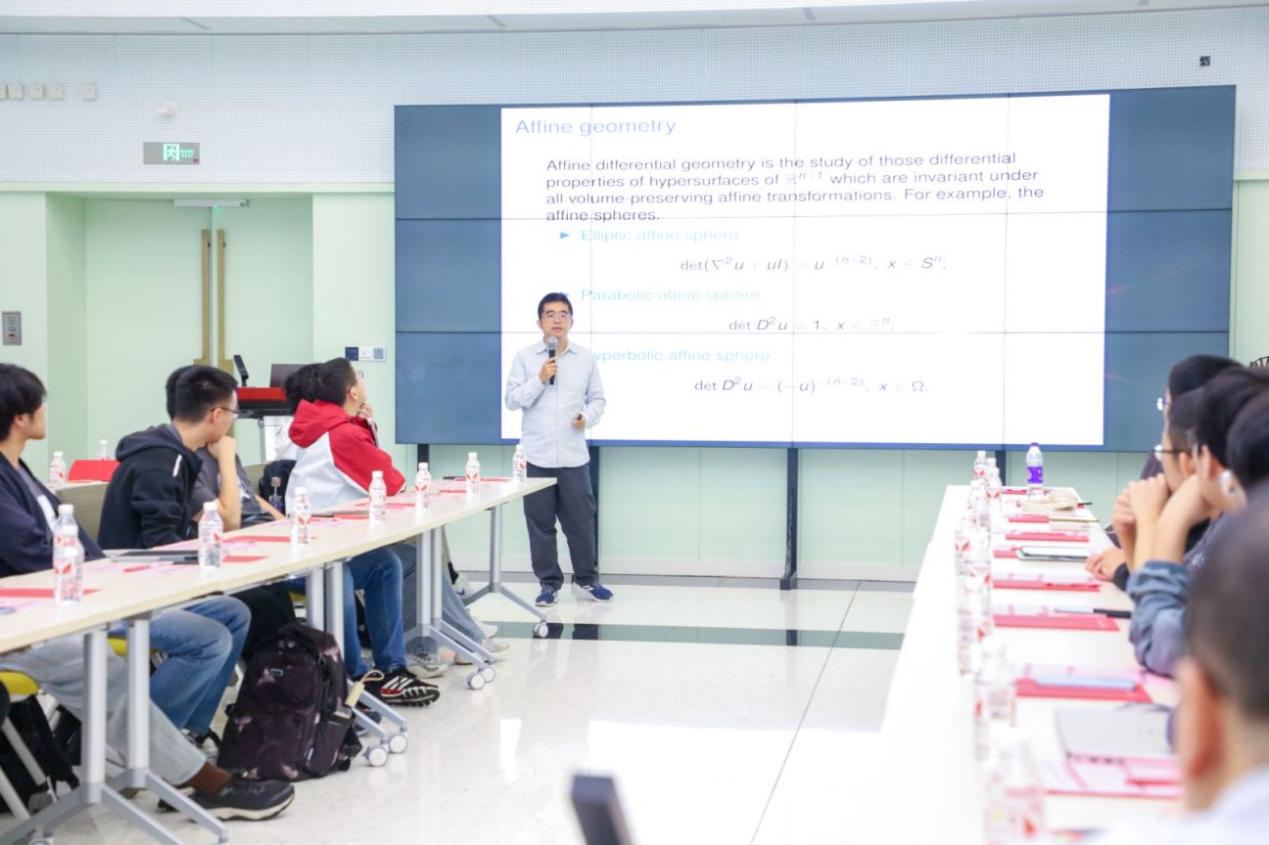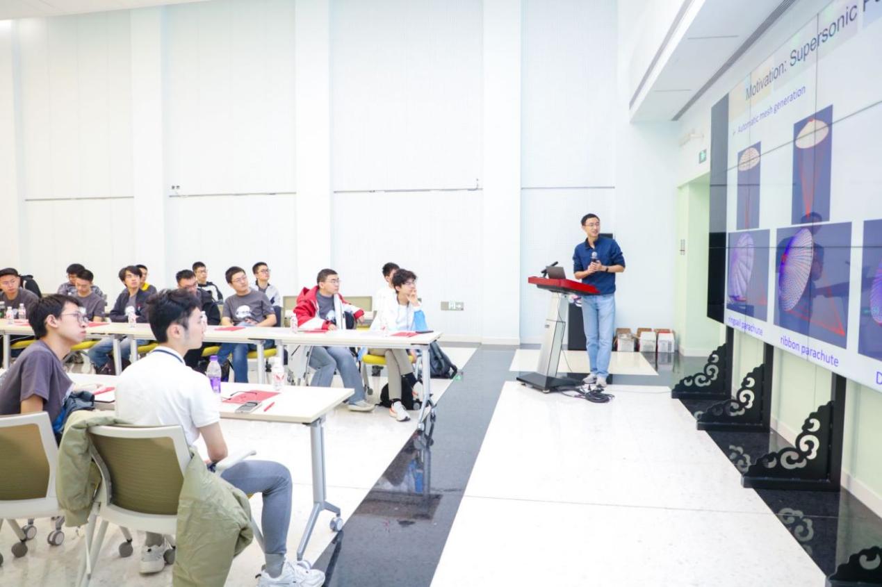 北京大学周斌老师和黄政宇老师首先为同学们带来了两场精彩讲座。周斌老师作了题为《Geometric and nonlinear PDEs》的报告,通过方程中出现的行列式说明了问题的几何意义与非线性,并介绍了这一问题历年来的重要进展;黄政宇老师以《Neural Operator for Multidisciplinary Engineering Design》为题,从太空探测器降落伞结构和无菌导尿管设计两个实例出发,讲解了如何利用机器学习的方法优化计算、提高效率,报告兼具深度与启发性。