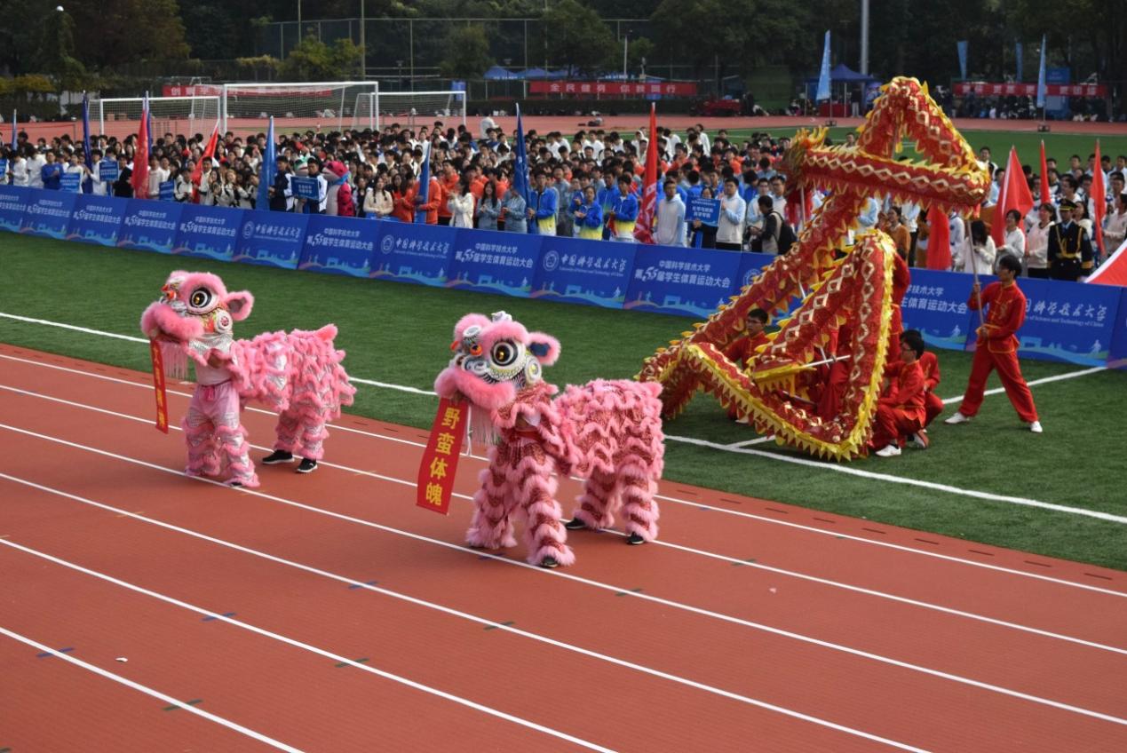 舞龙队员步伐整齐,身姿矫健,手中长龙盘旋飞舞;舞狮表演威猛灵动,狮头摆动、狮尾翻腾,引得现场一片欢腾;啦啦队员青春洋溢,活力四射,以热情舞姿为运动健儿加油助威。
