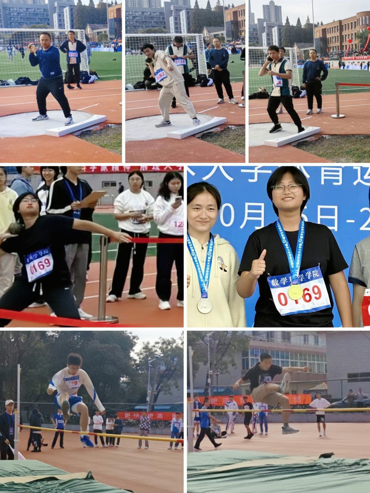 田赛项目精彩纷呈。铅球选手们运用旋转和蓄力的技巧将球投出,我院女子选手以出色的表现勇夺第一;跳高选手们助跑、摆臂、腾空、落地,一气呵成,英姿飒爽,赢得观众的阵阵掌声与喝彩。