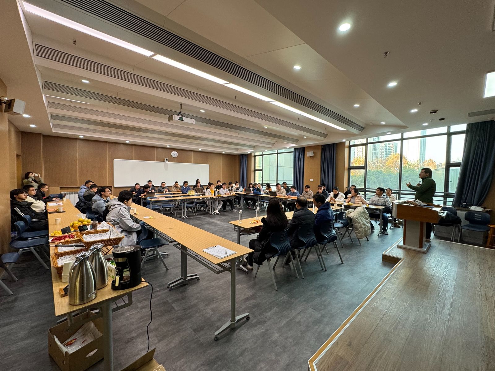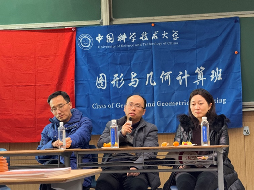 2024年12月18日下午,由数学科学星空(中国)应用数学教师党支部与图形与几何计算班联合开展的面向研一新生与大四保研同学的“师生面对面”活动,于第五教学楼5307教室顺利举行。本次活动由傅孝明老师主持,计算与应用数学系系主任刘利刚老师、党委副书记郑芳老师、李新老师、童伟华老师、万宏艳老师、翟晓雅老师、胡银雷老师、郭玉东老师等应邀出席,与同学们进行面对面分享与交流。