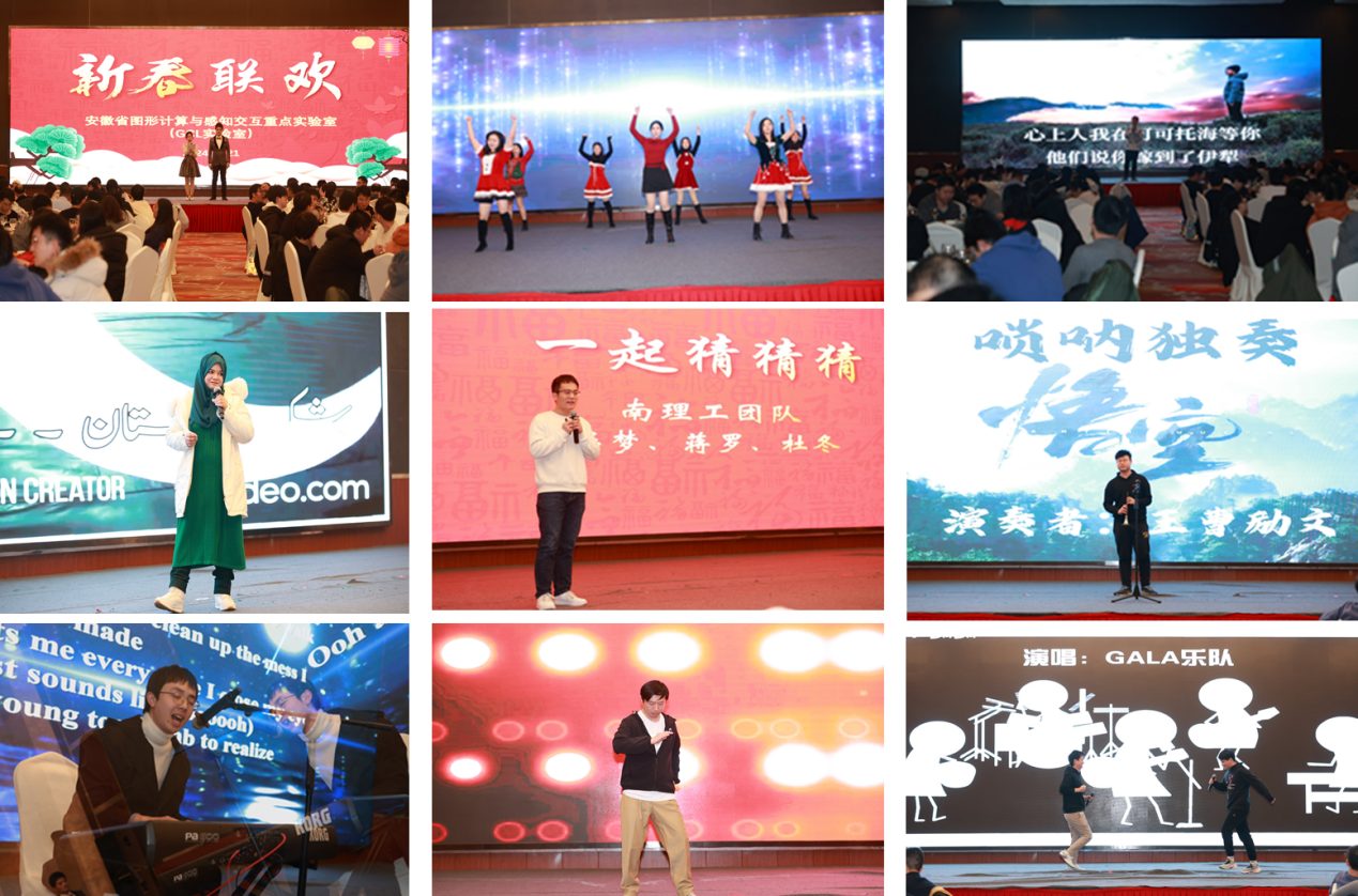 最后,实验室举办了迎新春联合晚会。实验室师生们自编自导了多个精彩的节目,包括独唱、合唱、舞蹈、钢琴弹唱、猜谜游戏等,充分展现了实验室成员的精神面貌与多才多艺。