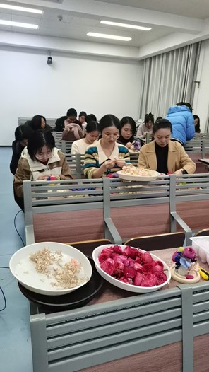 活动伊始,两位花艺师为大家详细讲解永生花的制作工艺和技巧。永生花,又名“永不凋谢的花”,经过特殊工艺处理后,能够长期保持其自然状态。师生们纷纷动手,挑选花材、修剪枝叶、设计造型,认真细致地将一朵朵鲜花变成充满创意的永生花作品。制作期间,大家相互交流,彼此欣赏,共同体验手工制作的乐趣。