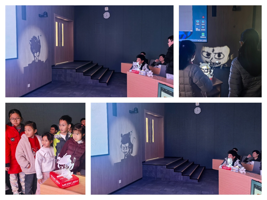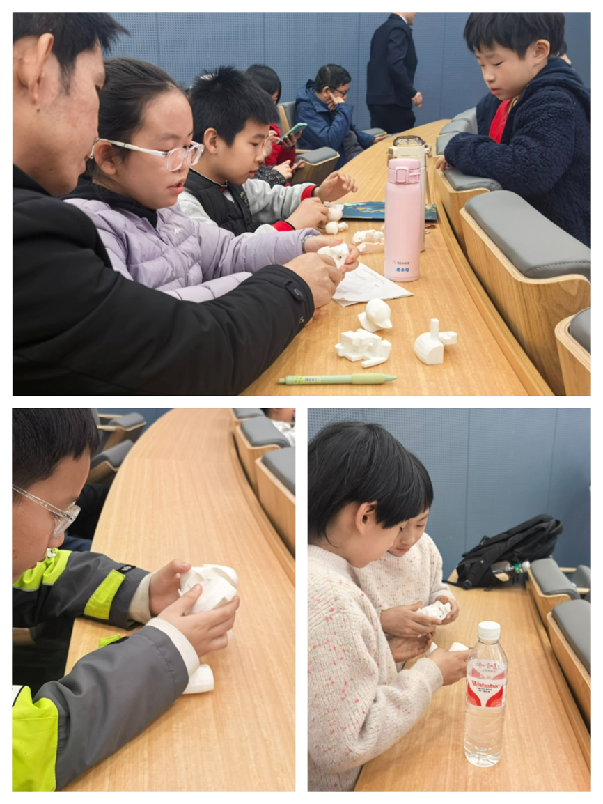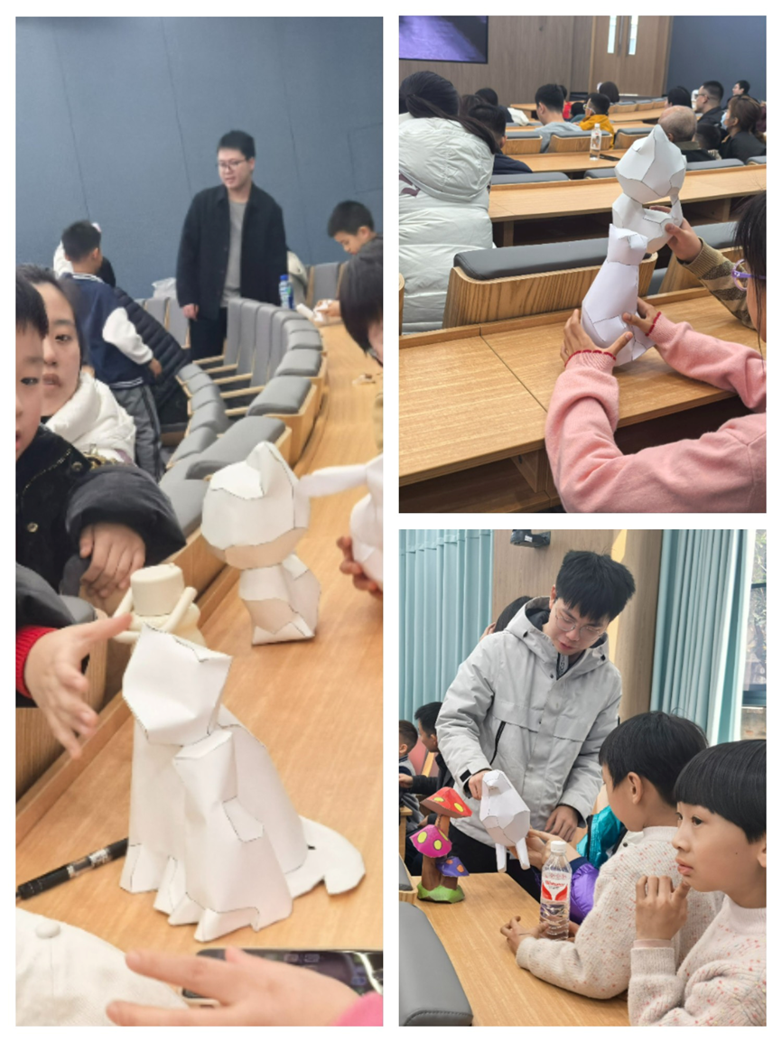 第三场讲座中,郑富文同学讲解了纸片光影艺术。这是一种别具匠心的艺术形式,通过精心设计纸质雕塑,使其在不同视角的光照下,能够投射出特定的图案。讲座期间,郑富文同学带来了相关实物,让现场的孩子们参与动手实践。孩子们在操作过程中,得以近距离观察在不同视角下,纸片雕塑所投射出的奇妙图案。