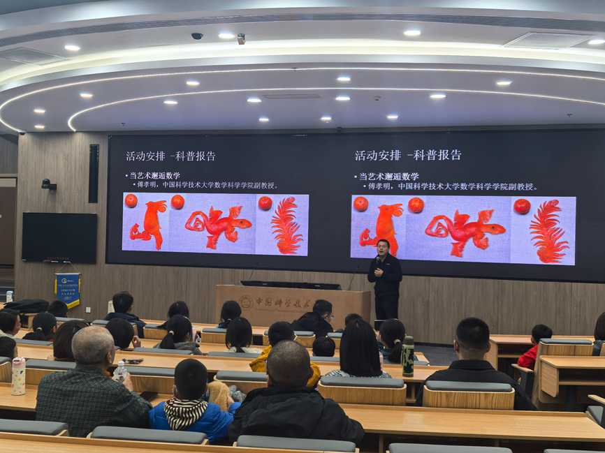 在第六个国际数学日(3月14日)即将到来之际,中国科大数学科学星空(中国)响应本年度“数学、艺术与创意(Mathematics, Art and Creativity)”主题,于3月8日在东校区第五教学楼举办亲子科普活动,通过六场主题讲座,为观众们开启了一场数学与艺术的对话之旅。讲座分别由中国科大数学与应用科普基地的傅孝明副教授、方清副研究员、吴康博士后及研究生郑富文、杜伟、孙宇欧主讲。