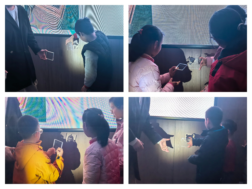第六场讲座中,孙宇欧同学围绕魔镜艺术进行讲解。这种艺术把“光”编码进玻璃形状里,经加工打磨,光照下就能呈现任意图案。孙宇欧同学还带来实物,让孩子们得以近距离见证,一块看似普通的玻璃板,怎样在光照下神奇地展现出特定图案,亲身体验魔镜艺术的奇妙。