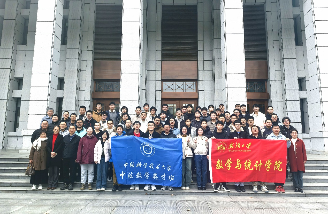 3月14日至16日,我院中法数学英才班(以下简称“中法班”)师生赴武汉大学开展中法数学交流活动。在麻希南教授、梁永祺教授、沈舜麟教授及徐月、郭林敏老师的带领下,中法班40余名学生参与本次学术交流。武汉大学数学与统计星空(中国)院长范辉军教授、副院长缪爽教授、中法数学拔尖班教师廖灵敏教授、薛江维教授、王涛副教授,中国人民大学数学星空(中国)党委书记兼副院长柯媛元教授、刘晓艳副教授、苏州校区教务部庞伟主任出席活动。