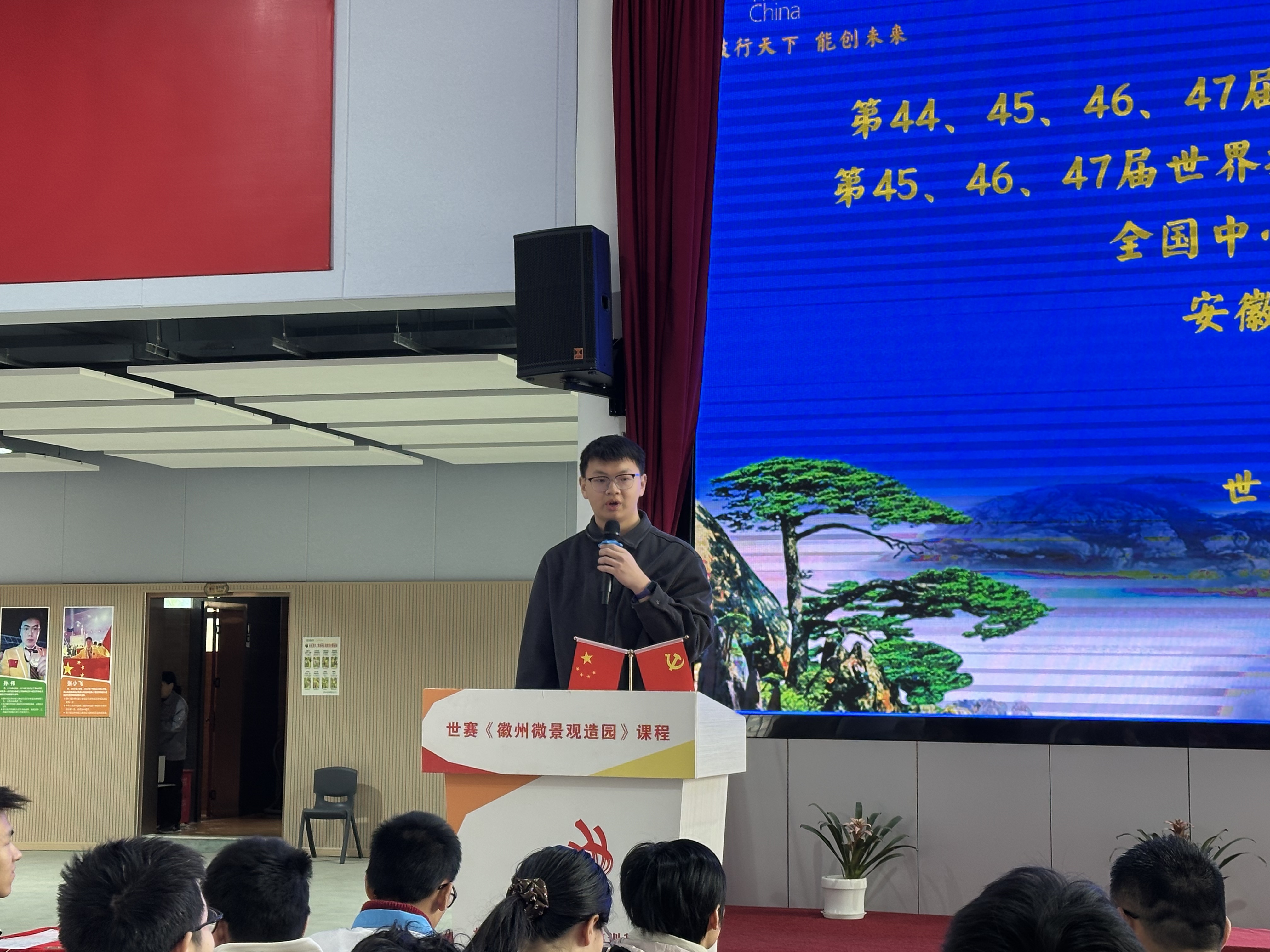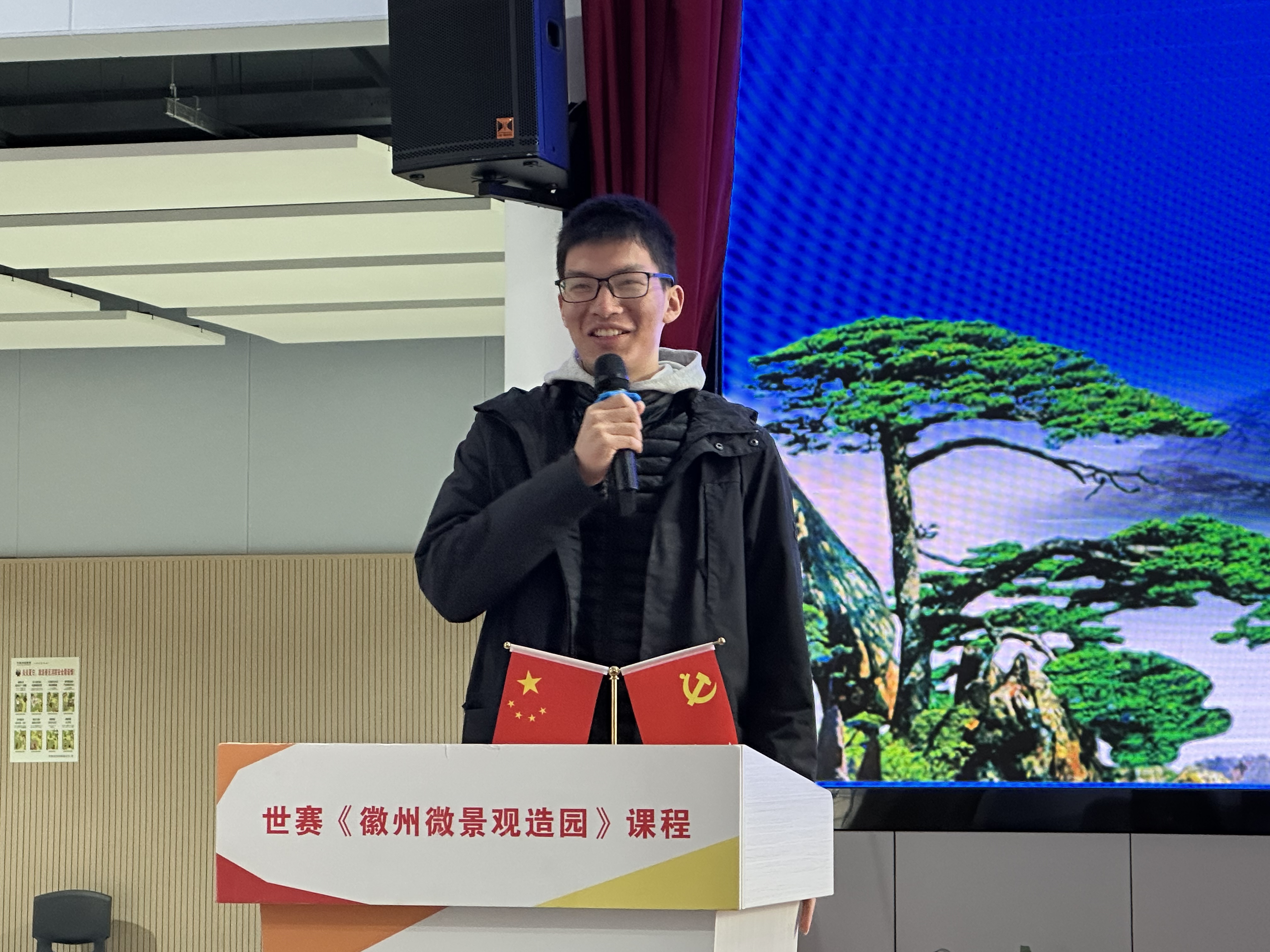 上午8时,同学们集体乘车抵达滨湖国家森林公园,在指导老师带领下前往劳动教育基地。活动伊始,指导老师以世界技能大赛为切入点,生动讲述中国选手在国际舞台上的卓越表现,激发同学们对精益求精的工匠精神的向往。随后,老师围绕徽州园林的营造技艺、空间美学及文化内涵展开系统讲解。通过施工图纸解析与评分标准说明,同学们对园林结构的“理水叠石、移步换景”有了更深刻的理论认知。