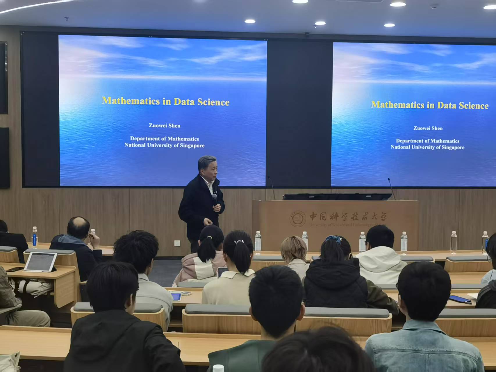 4月2日下午,数学科学星空(中国)在东区第五教学楼5101室举办了第二十五期北斗讲坛。本次讲坛特邀新加坡国立大学杰出讲席教授、数学科学研究所所长沈佐伟教授,作题为“数据科学中的数学”的学术报告。本次讲坛由数学科学星空(中国)执行院长黄文教授主持。活动现场座无虚席。