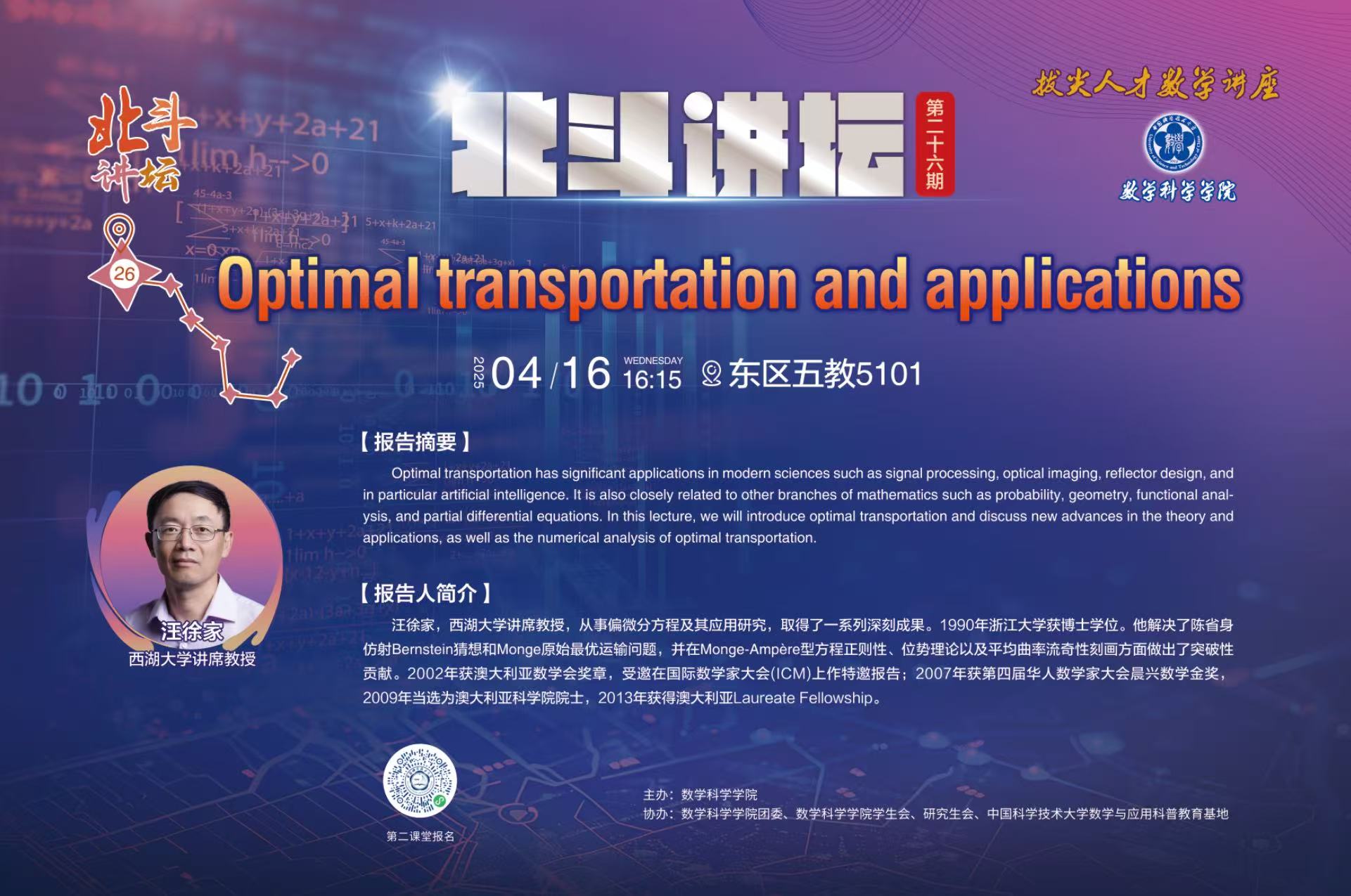 04-16【汪徐家】五教5101 北斗讲坛第26期:Optimal transportation and applications