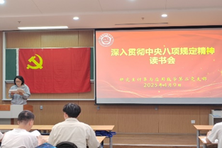 2025年4月9日,研究生计算与应用第二党支部在5106教室举办了“深入贯彻中央八项规定精神”读书会。会议传达了学校关于印发《中共中国科学技术大学委员会关于开展深入贯彻中央八项规定精神学习教育的实施方案》的通知。