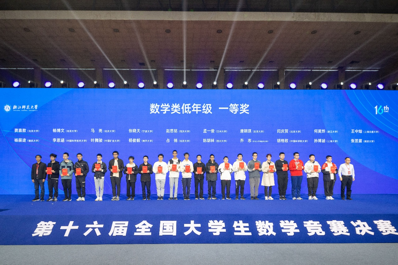 中国科学技术大学在本届竞赛中荣获佳绩,共16名学子进入决赛,最终荣获一等奖9项、二等奖5项、三等奖2项,数学专业(高年级组)前15名人数位列全国高校第一。其中,我院学子侯国豪、谭立荣获专业组一等奖。
