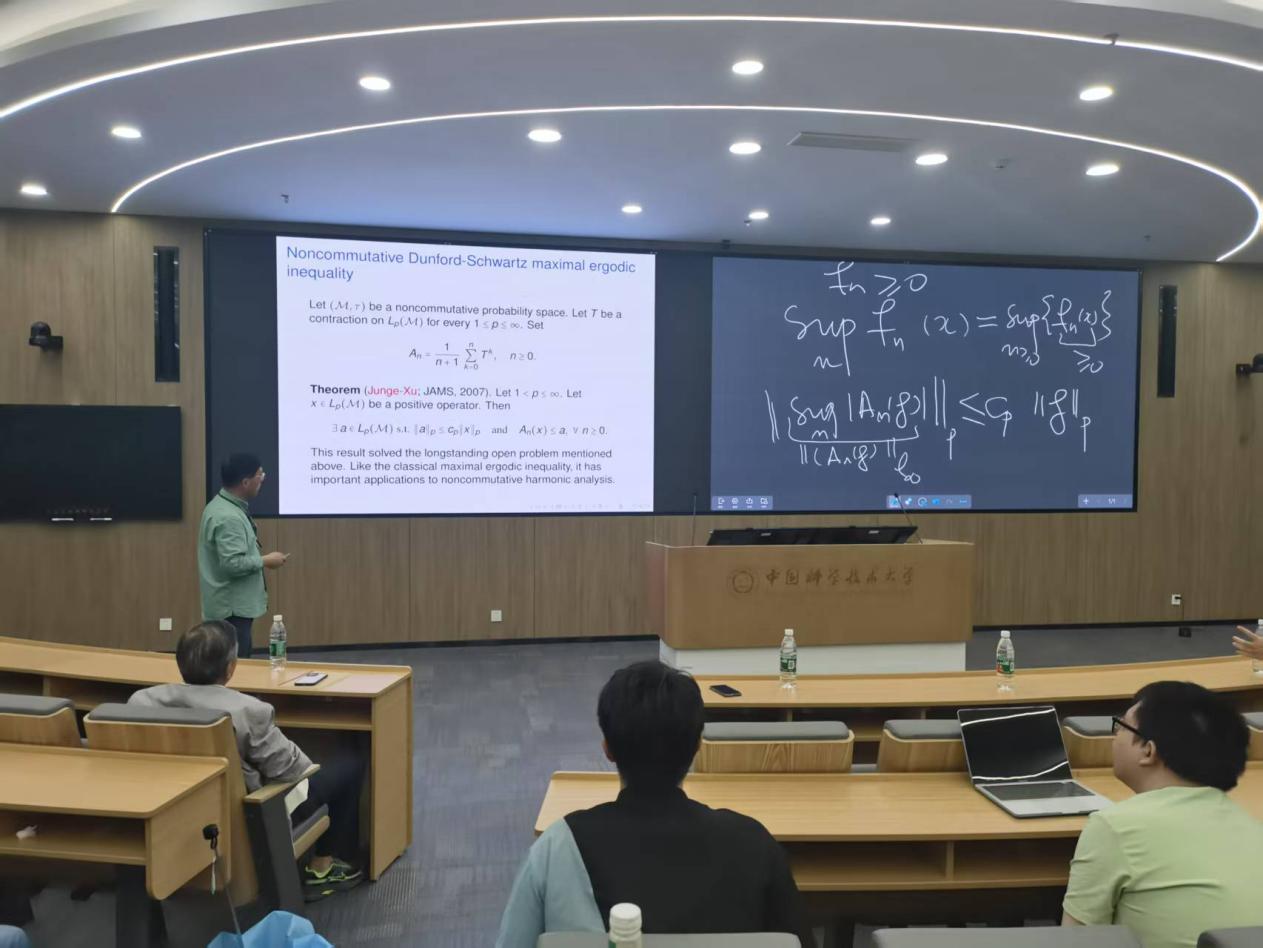 许全华教授首先回顾了“Noncommutative Lp - spaces”的起源。他指出,20世纪末,随着量子力学与算子代数理论的兴起,“Noncommutative Lp - spaces”进入发展新时期。接着,许教授从函数的一般情况入手,深入剖析“Noncommutative Lp - spaces”核心理论与性质。在这一过程中,许教授不仅强调了理论的严谨性,还通过生动的比喻,让听众深刻理解了理论内容。最后,随着讲解的深入,许教授开始逐步展开“Noncommutative Lp - spaces”的应用,展示了这一领域研究的挑战与机遇,激发了听众对于探索未知数学疆域的好奇心。