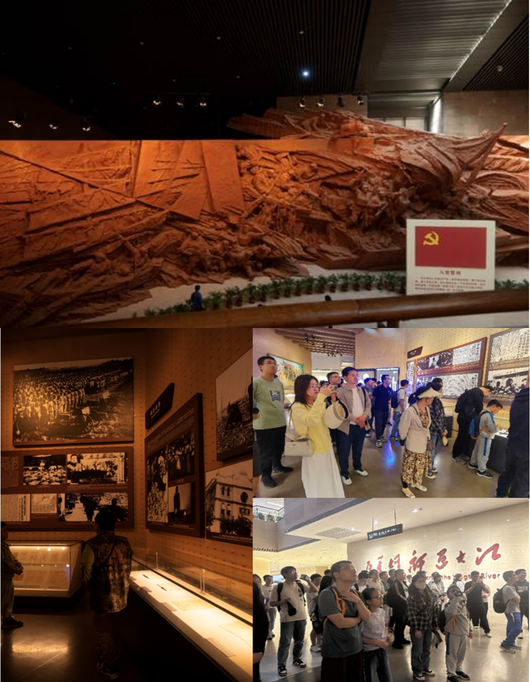渡江战役纪念馆是本次活动的首站。作为全国爱国主义教育示范基地,纪念馆主体建筑形似两艘乘风破浪的战舰,再现了70多年前“钟山风雨起苍黄,百万雄师过大江”的激情岁月。在邓小平、刘伯承等革命前辈铜像前,全体成员瞻仰并合影留念。