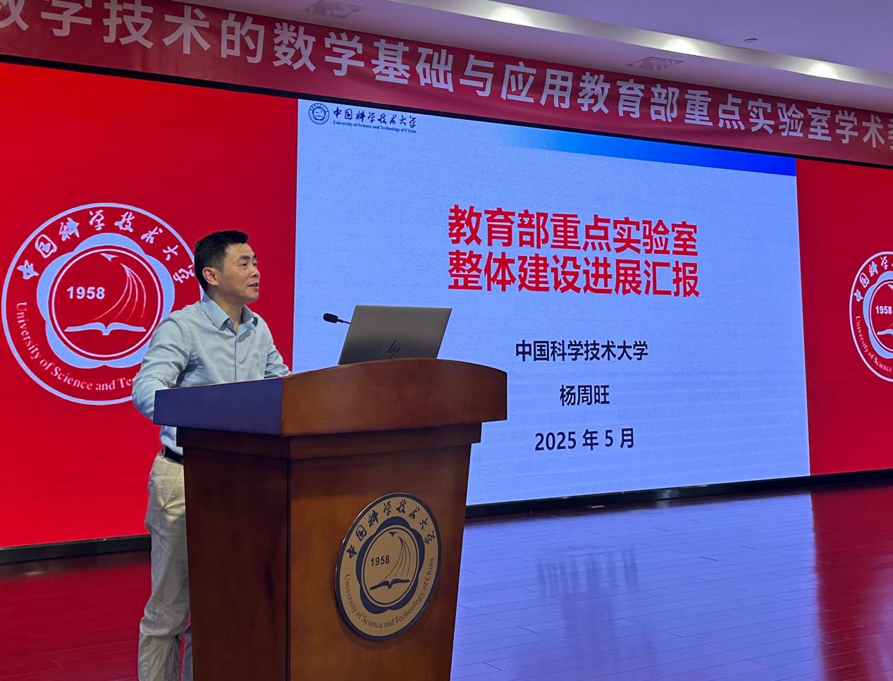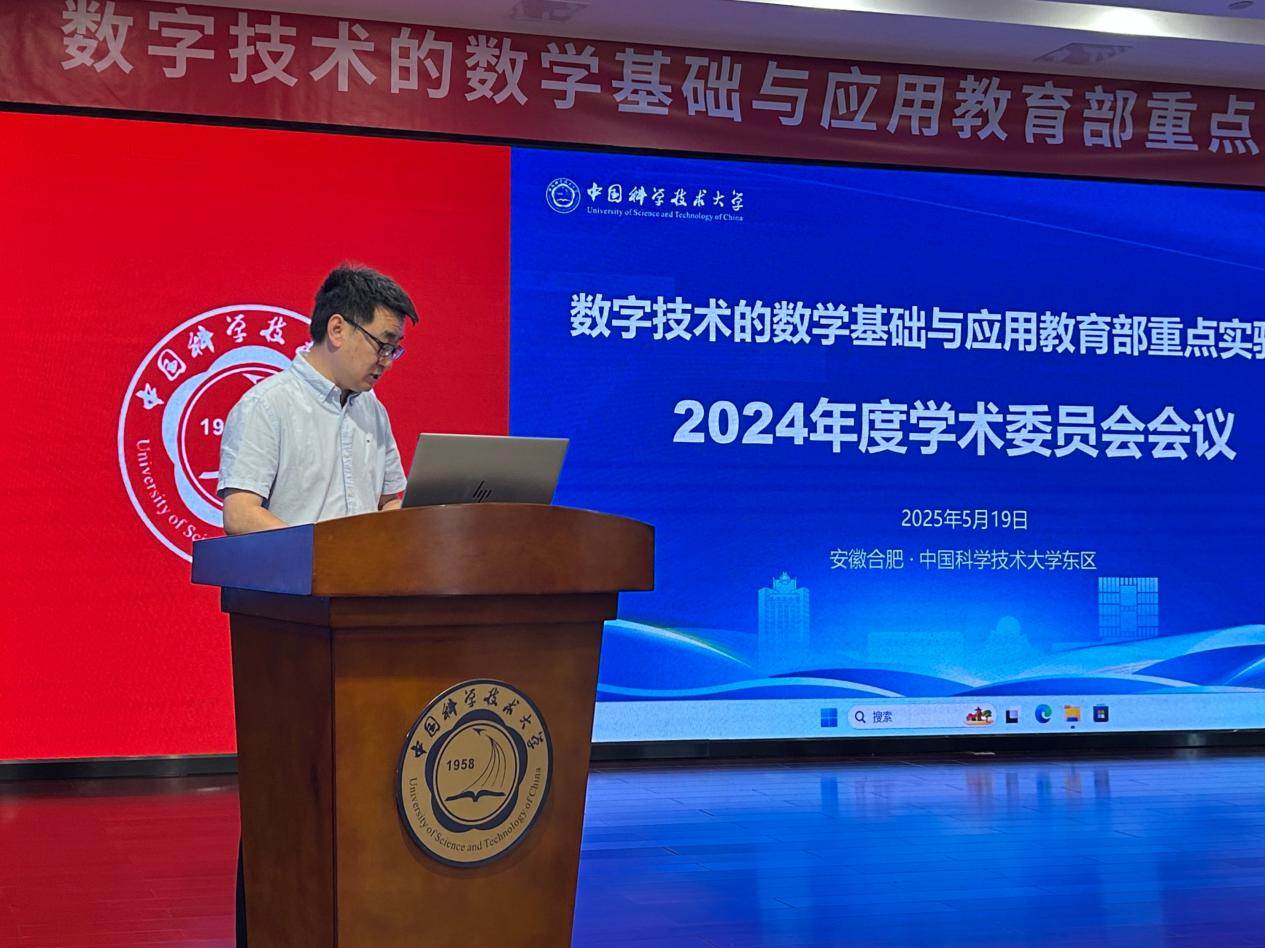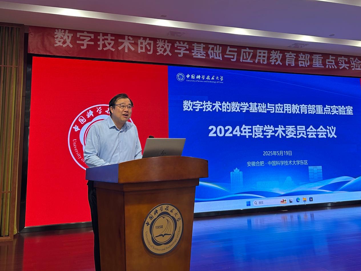 2025年5月19日,数字技术的数学基础与应用教育部重点实验室在东区召开了学术委员会年度会议。中国科大党委常委、副校长傅尧教授,实验室主任杨周旺教授,学术委员会委员杨金龙院士、叶向东院士、沈维孝院士等人,科研部副部长许旻、数学科学星空(中国)执行院长黄文教授、副院长王毅教授及实验室骨干成员出席会议。会议由黄文教授主持。