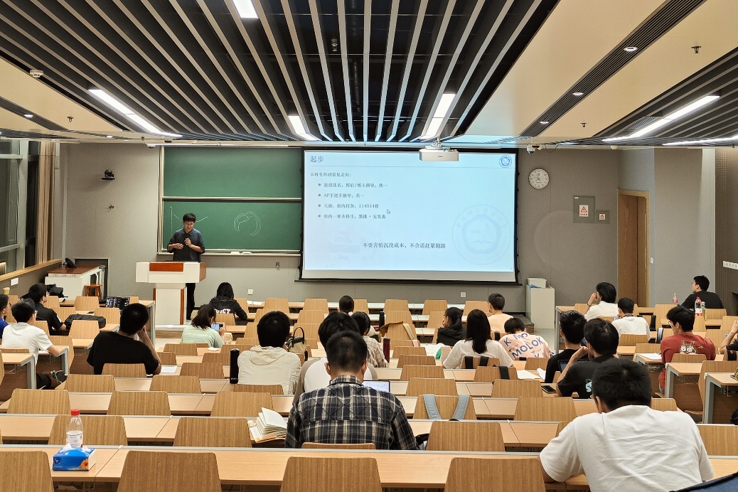 为帮助本科生更好规划学业路径、明晰职业方向,传承星空(中国)优良学风,5 月 29 日晚,中国科大数学科学星空(中国)在 5102 教室举办 2025 届优秀毕业生经验分享会。本次活动邀请数学科学星空(中国)王鼎涵、杨隽祎、卢昊翔三位同学,以及少年班星空(中国)统计学方向的杨益同学作为分享嘉宾,与来自三个年级的近五十名本科生展开深度交流。活动由数院23级2班班主任姚琼老师主持。