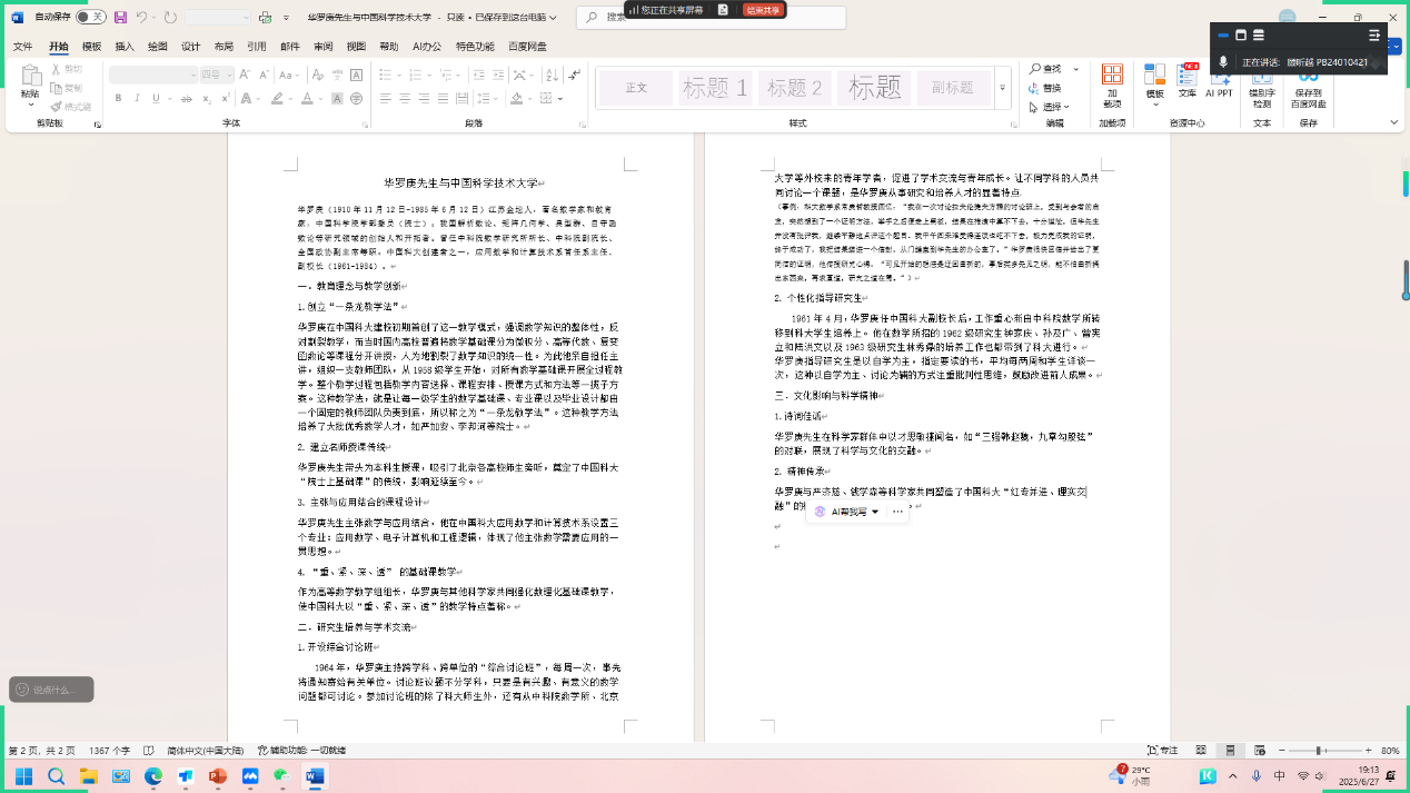 随后,宣讲团成员依次进行专题分享。顾昕越同学详细介绍了中国科大与华罗庚先生的深厚渊源,回顾了华老在数学领域的卓越贡献及其对科大数学学科发展的深远影响。黄冠骅和温泽田同学阐述了一些华罗庚的生平事迹,大家一起学习了华老身上的体现出的爱国、创新、求实、奉献精神。沈妍同学进一步介绍了“华罗庚科技英才班”的设立背景与培养目标,强调了中国科大在培养数学拔尖人才、传承科学家精神方面的做出的努力。