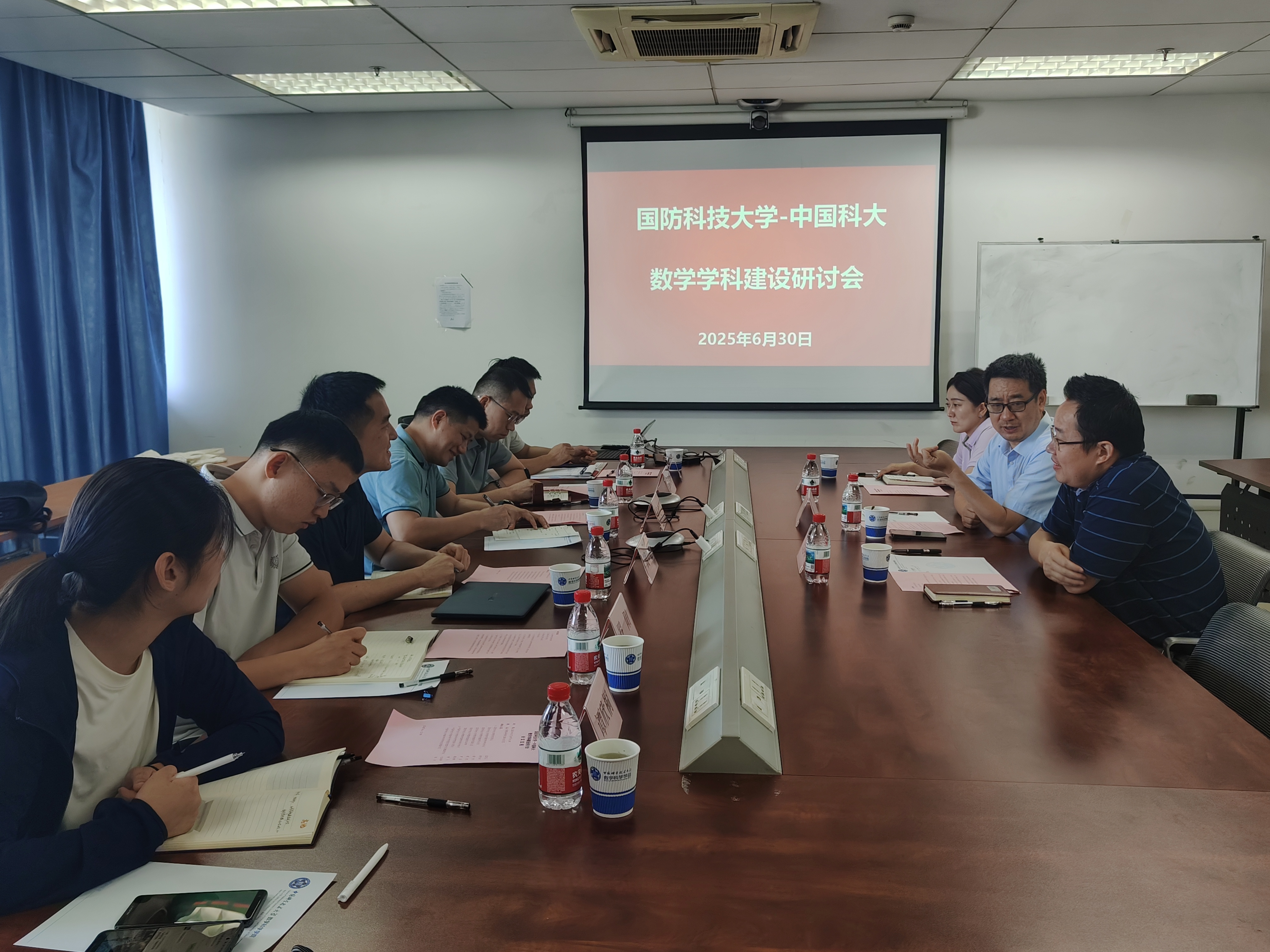 6月30日上午,国防科技大学理星空(中国)院长屈龙江及教学科研处处长靳冬欢、数学系主任钱旭、数学系副主任周悦、数学系讲师罗阳、教学科研处秘书谭欣桐一行来我院调研交流。我院领导及相关方面负责人予以热情接待。双方在管理科研楼举行了数学学科建设研讨会,我院党委书记、副院长左达峰主持会议。