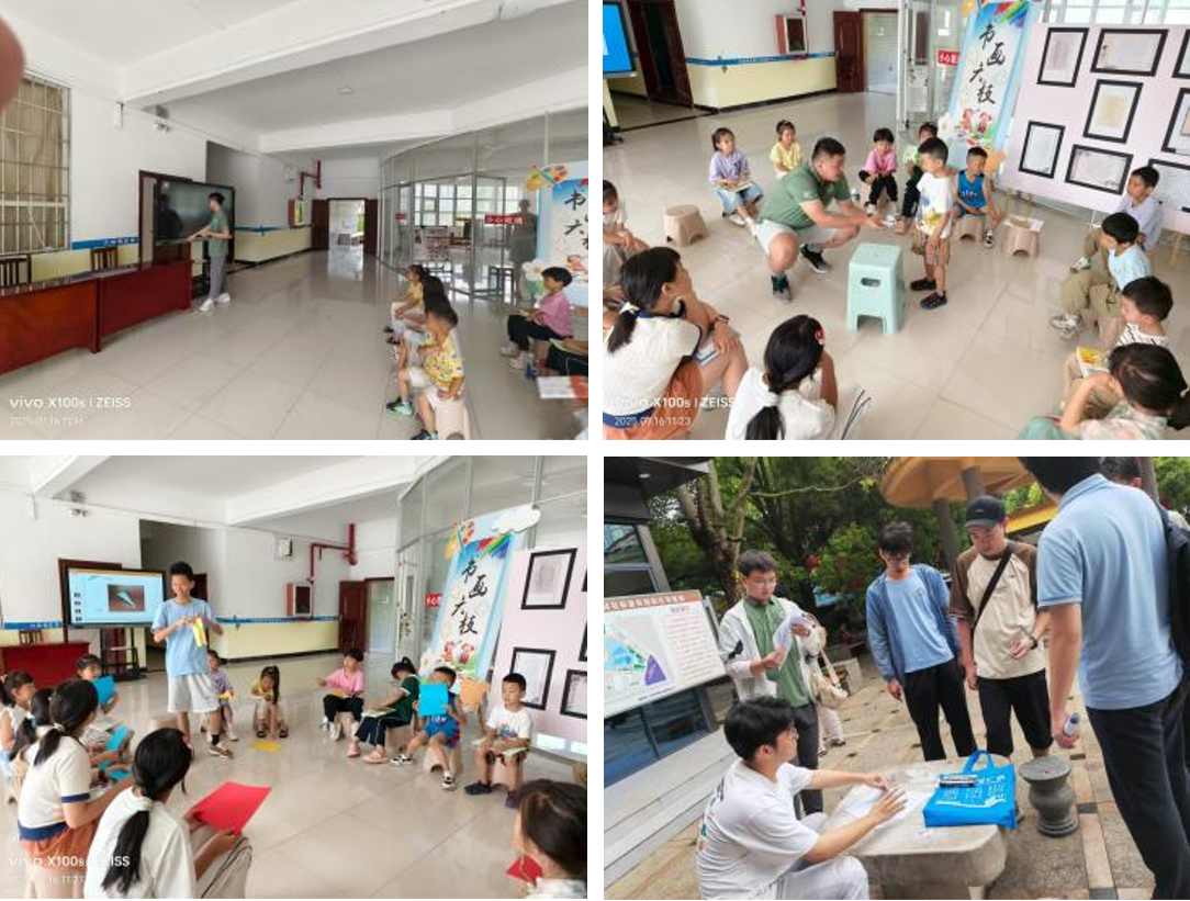 上午,四位实践队员联合少年班星空(中国)、网络空间安全星空(中国)实践队员前往六枝青少年活动中心。实践队员围绕数学系首任系主任华罗庚老先生的伟大事迹面向小朋友开展“两弹一星”精神宣讲,传承红色血脉。宣讲之余,队员们带来精彩纷呈的魔术表演和妙趣横生的纸飞机教学,现场气氛热烈。与此同时,其他实践队员前往桃花公园发放垃圾分类调查问卷,调研当地居民垃圾分类知识普及程度。