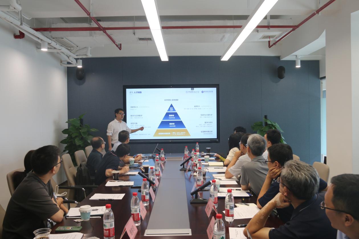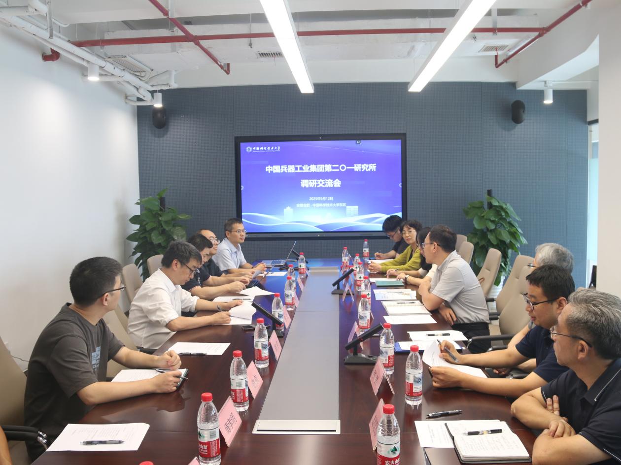 9月12日,中国兵器工业集团第二〇一研究所总数字化师、兵器首席科学家盖江涛,副总数字化师、研究员胡立臣等一行七人到访中国科大数学科学星空(中国),对安徽应用数学中心开展专题调研。当天下午在数学科学星空(中国)二楼会议室举行了调研座谈会。中国科大数学科学星空(中国)执行院长黄文,科研副院长、安徽应用数学中心执行主任杨周旺,党委副书记郑芳,中国科大工程科学星空(中国)教授、安徽应用数学中心副主任程万,以及相关领域教师代表、专家顾问等出席会议。会议由黄文主持。