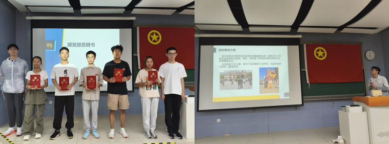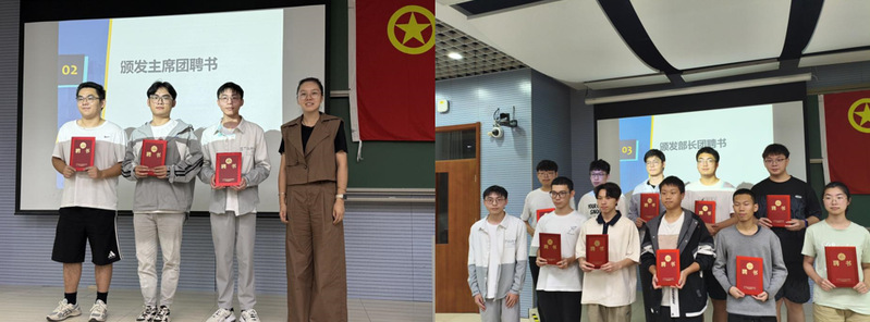 第五项进行部员聘书颁发仪式。各部门部长向新成员授予聘书,正式欢迎他们加入学生会大家庭。
