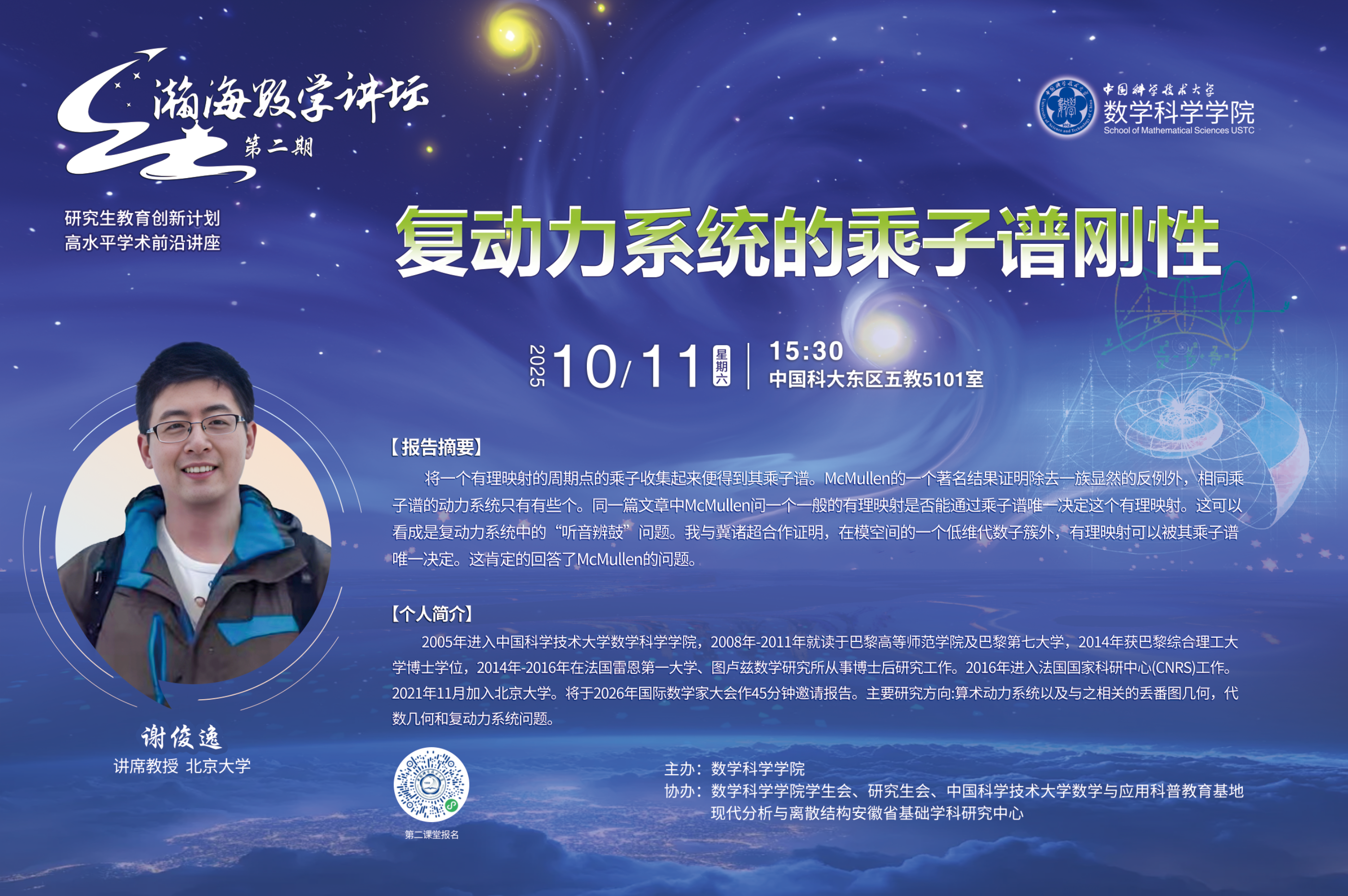 10-11【谢俊逸】瀚海数学讲坛第二期:复动力系统的乘子谱刚性