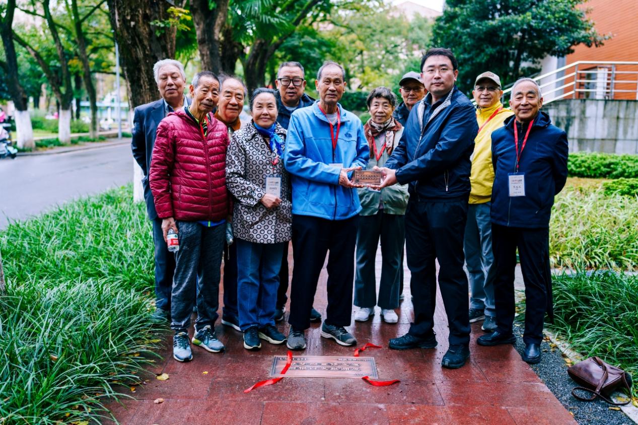 此外,651班校友向母校捐赠了一块承载深情的纪念地砖,上书“寻梦痴童修正道,归根白发报师恩”。地砖题词凝聚了全班同学共同的心声——虽青春远去,但赤诚如初。