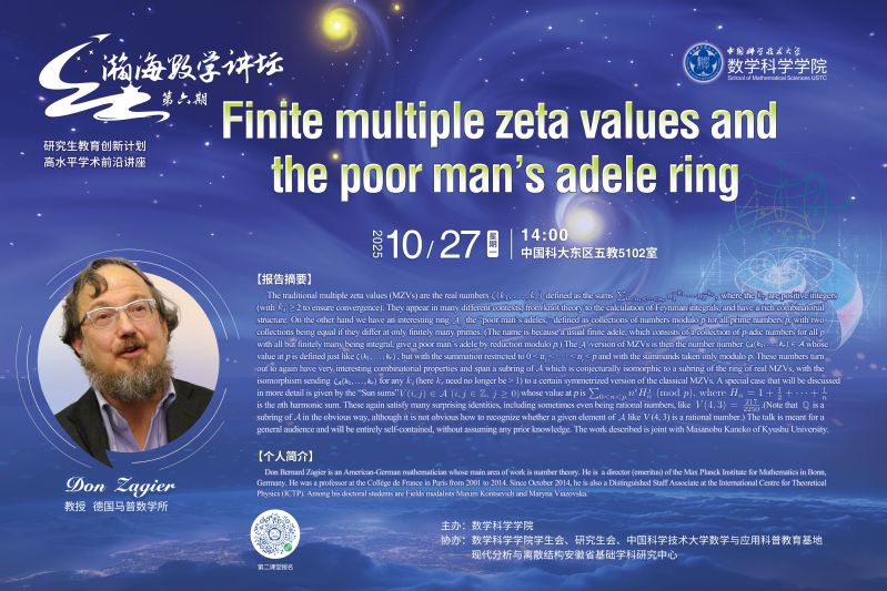 10-27【Don Zagier】瀚海数学讲坛第六期:Finite multiple zeta values and the poor man’s adele ring