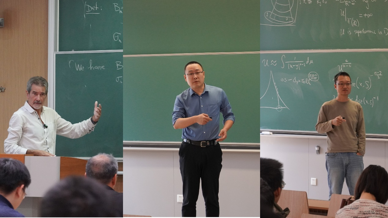 在科普报告环节,马世光教授以《位势理论与偏微分方程》为题,从同学们熟悉的点电荷电势切入,逐步将这一思想沿用到偏微分方程理论中并介绍该领域的前沿工作,进而运用该理论给出一个Schoen-Yau定理的证明,展现了这一工具的强大力量。梁永祺教授以《数论中的局部与整体》为题介绍了局部数域的概念及其分析性质与初等数论的联系,通过从局部域到整体域的过渡引出了Colliot-Thélène-Sansuc猜想与Skorobogatov猜想。这两个猜想希望从几何性质得到代数性质,贯彻了“几何决定代数”的哲学思想。两场报告以深入浅出的方式开拓了同学们的数学眼界和思维。
